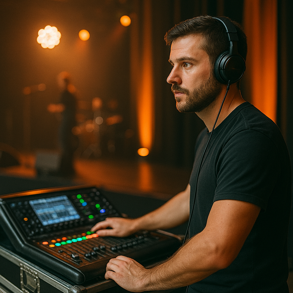 Mezcla profesional en directo con balance perfecto para shows, bandas o DJs.